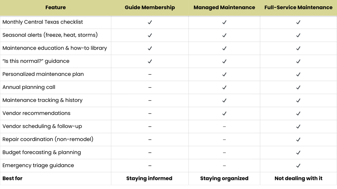 Owning a home in Central Texas comes with surprises. Cracks that appear overnight. Systems that hate extreme heat. Freezes that cause chaos. Most people aren’t ignoring maintenance. They’re just tired of guessing what actually matters.